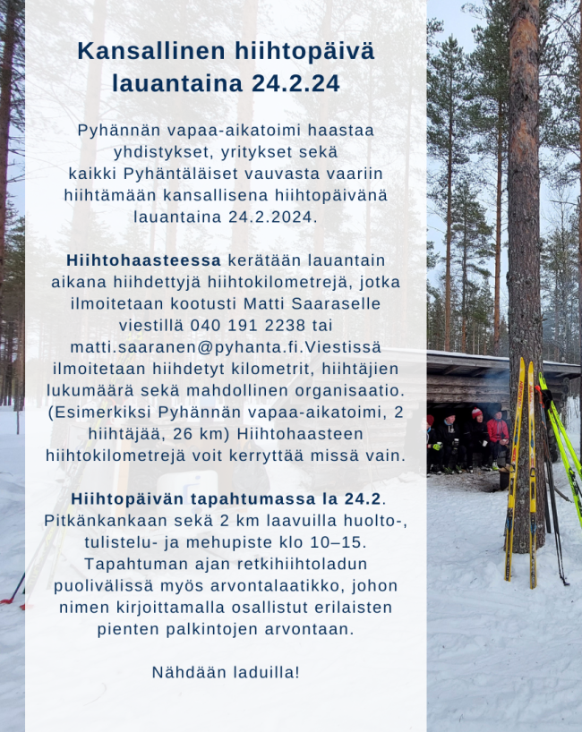 | Tapahtuman nimi | Kansallinen hiihtopäivä Pyhännällä |