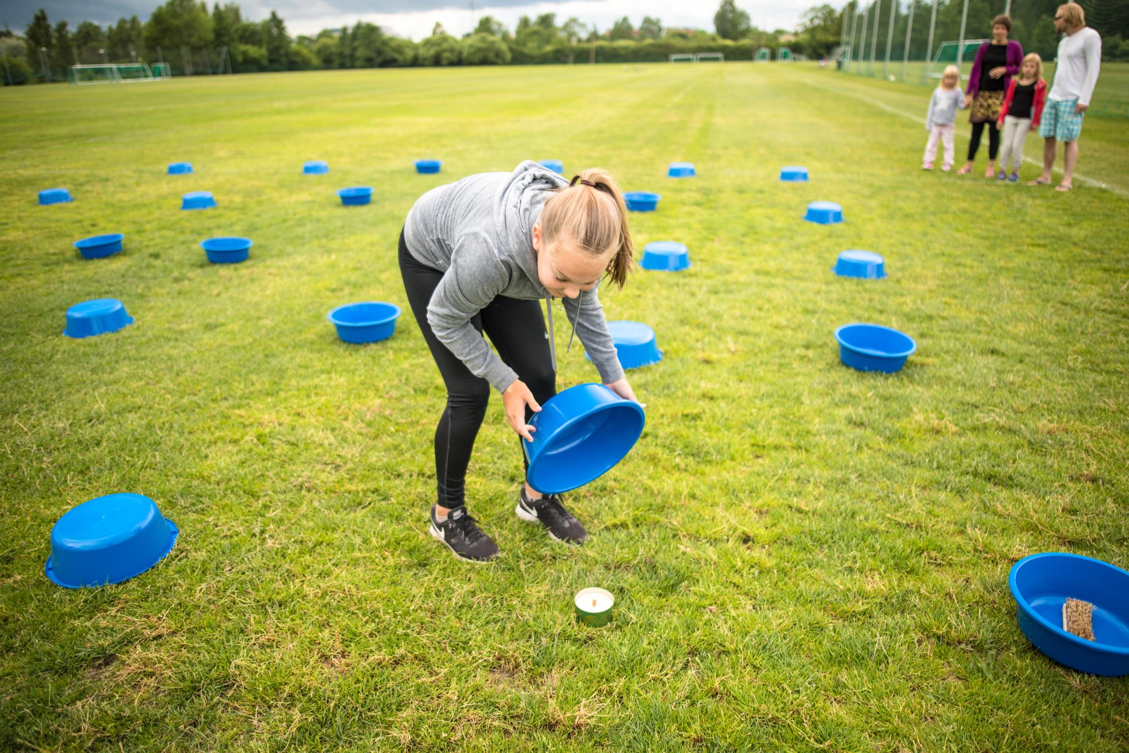 - Ohjaaja/pelin johtaja käy levittämässä ämpärit alassuin pelialueelle ja piilottaa jokaisen alle yhden esineen satunnaisessa järjestyksessä.