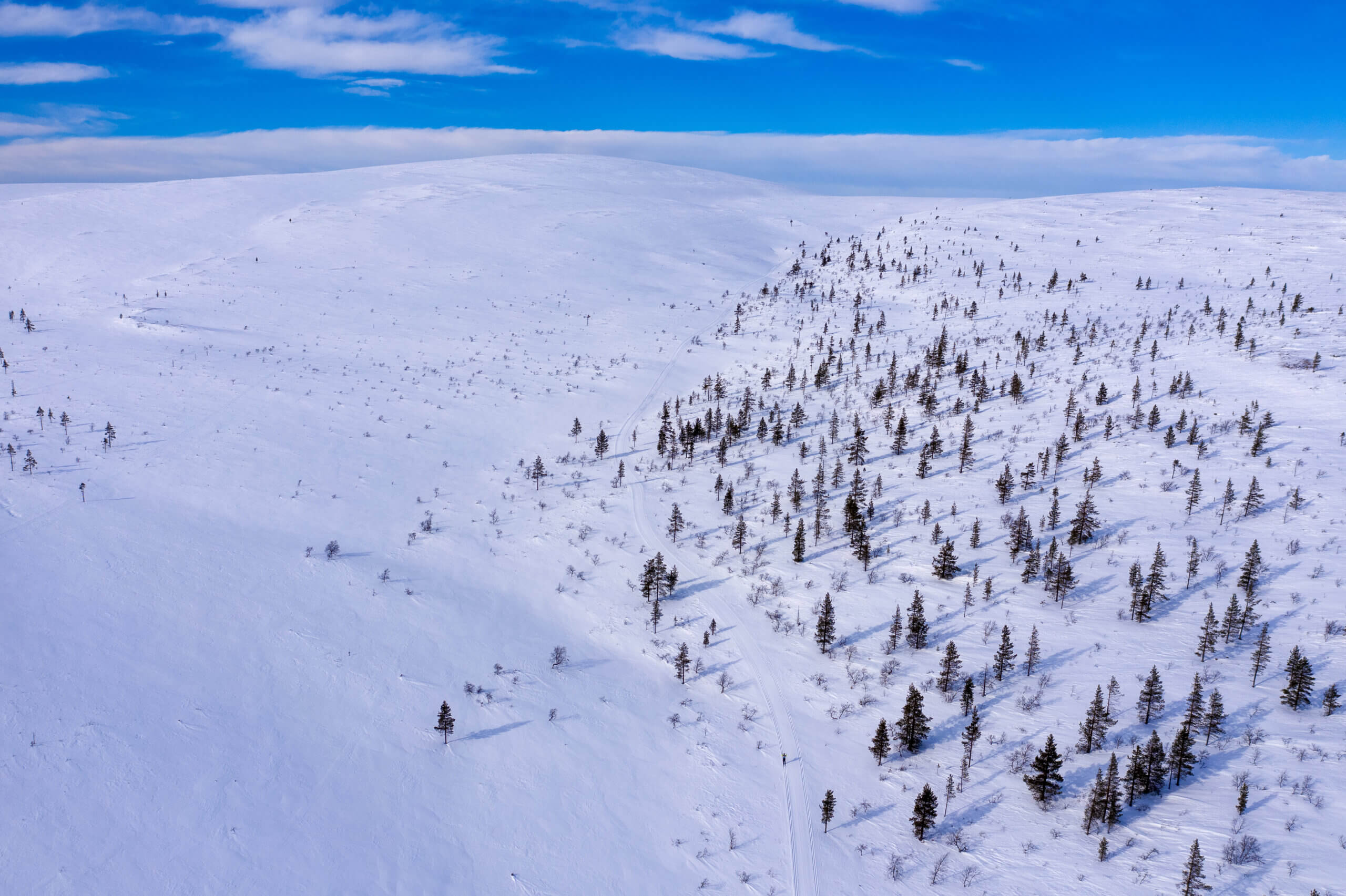 Pohjoinen tunturiluonto peittyy lumeen yli puoleksi vuodeksi. Hiihtäjä kokee lajin ja pitkän lumisen ajan monipuolisuuden Saariselän ja Kiilopään hangilla.