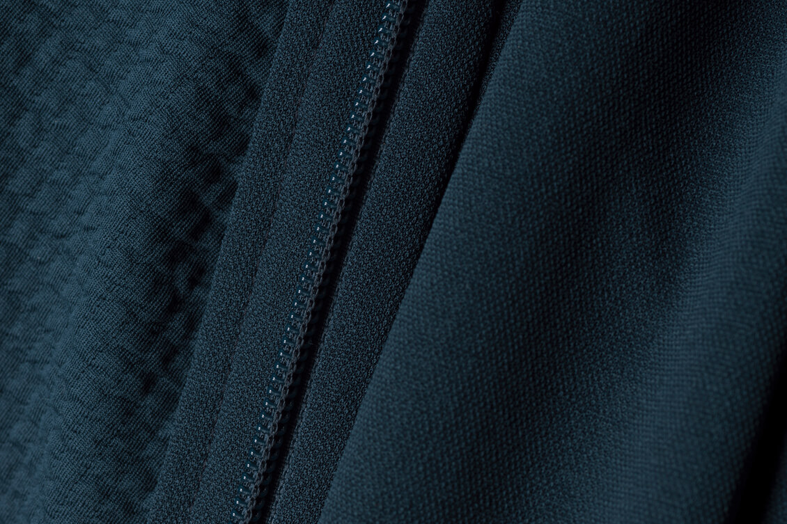Polartecin Power Air -kankaassa fleece-kuitu on kapseloitu pieniin ilmataskuihin tiiviin pintakerroksen alle, eikö sen vohvelimainen sisäpinta ei ole totutun nukkainen.