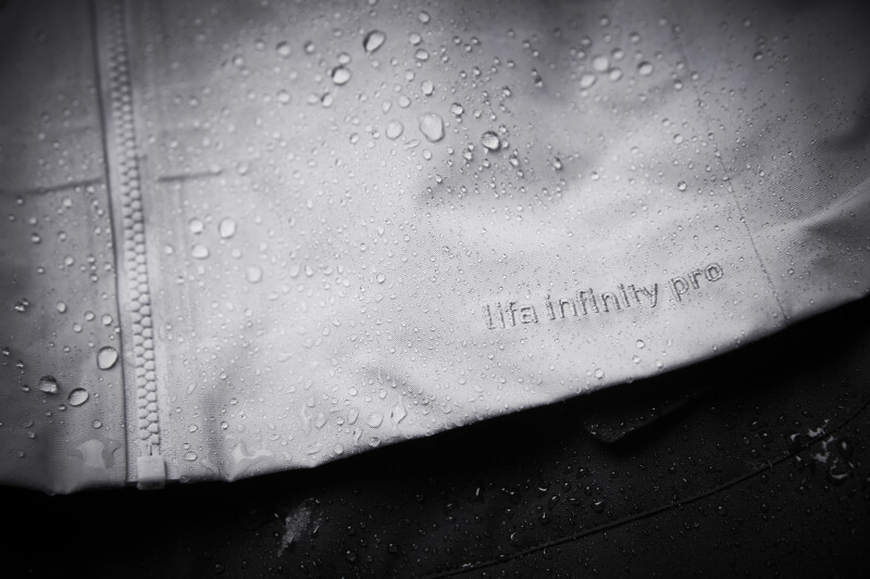LIFA INFINITY PROTM on uraauurtava ja innovatiivinen materiaali, joka ratkaisee yhden teknisiin ja toiminnallisiin ulkoilumateriaaleihin liittyvistä suurista haasteista. Kolmikerroksinen vedenpitävä ja hengittävä materiaali on valmistettu niin, että kankaan pinnassa toiminnallisuuden kannalta tärkeä vedenhylkivyys on aikaansaatu hydrofobisten kuituominaisuuksien ja kankaan rakenteen avulla täysin ilman lisättyjä kemikaaleja.
