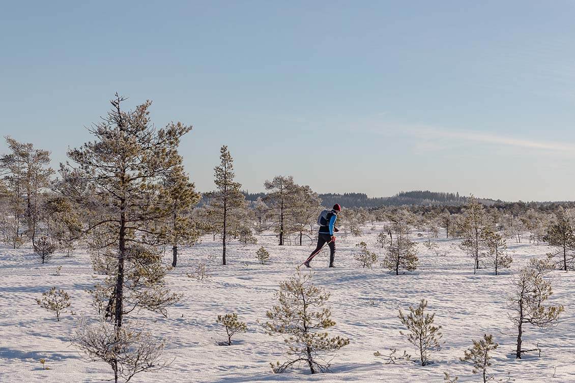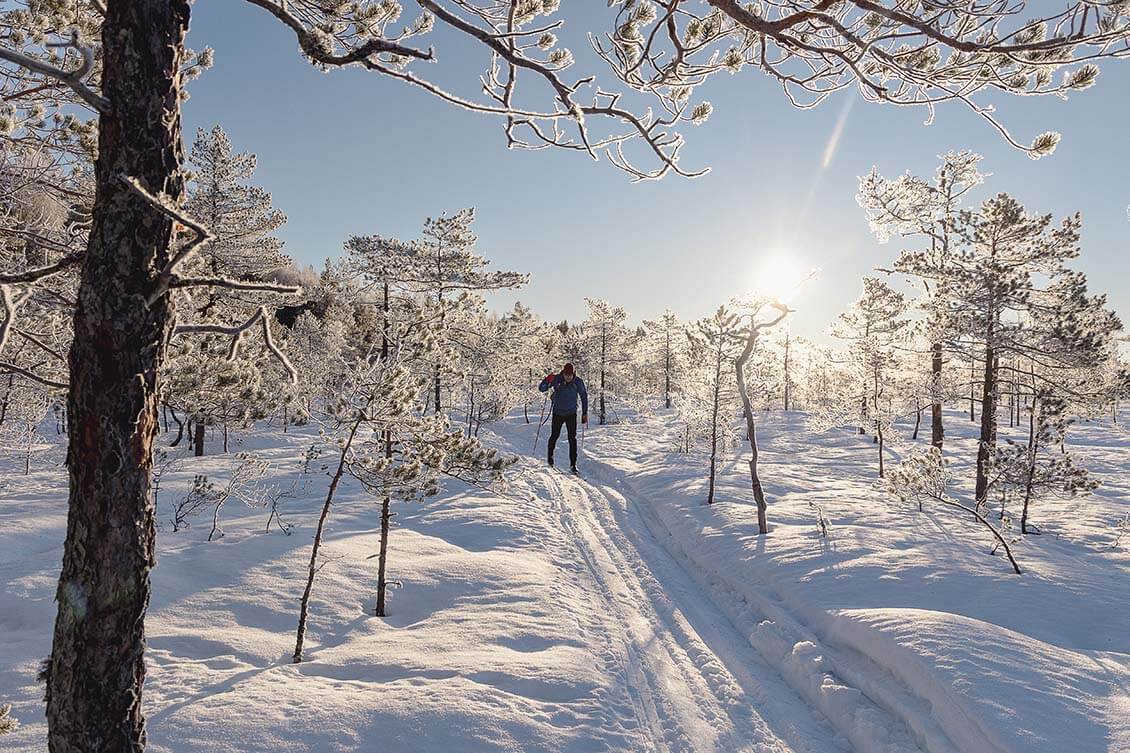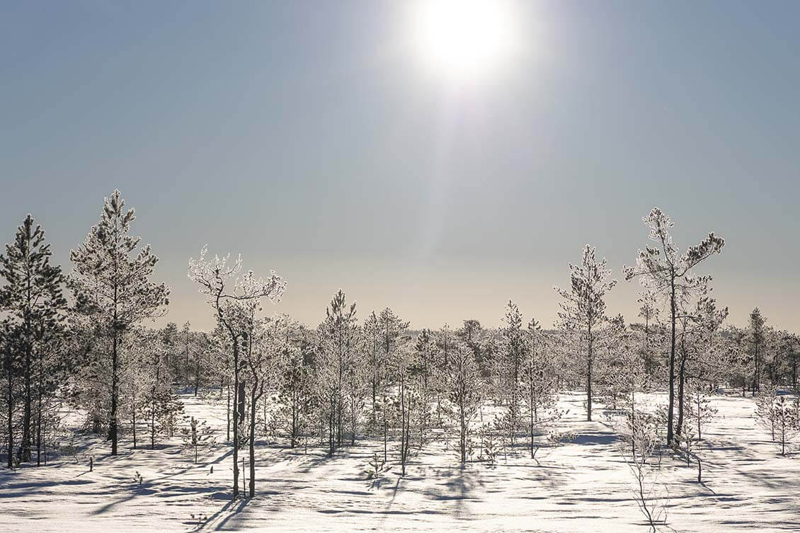 Luonnon kauneutta on vaikea kuvailla. Puusto on verhoutunut kauttaaltaan valkoiseen kuuraan. Matalalta paistava keskitalven aurinko siivilöityy kitukasvuisten mäntyjen läpi ja saa maiseman kimaltelemaan häkellyttävän kirkkaana.