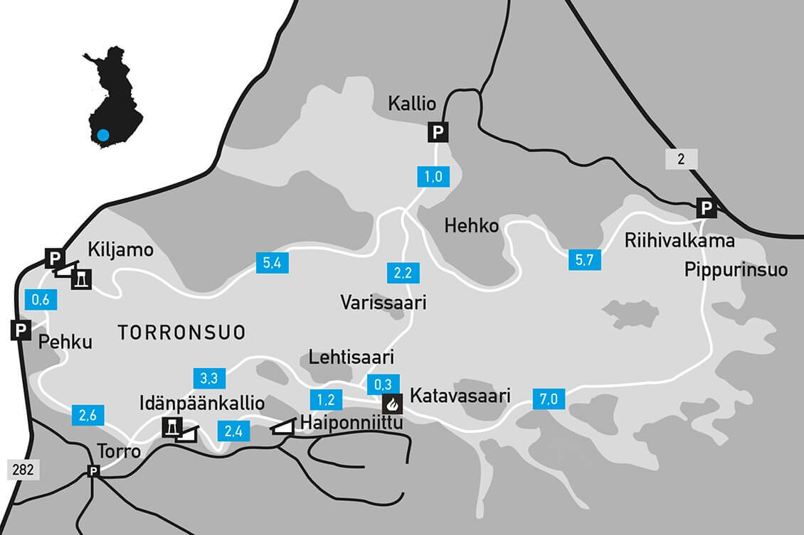 Torronsuon ympärysladulle tulee mittaa noin 25 kilometriä. Vastaantulijoille annetaan puolikasta latua. Sekin on katoavaa hiihtoperinnettä.
