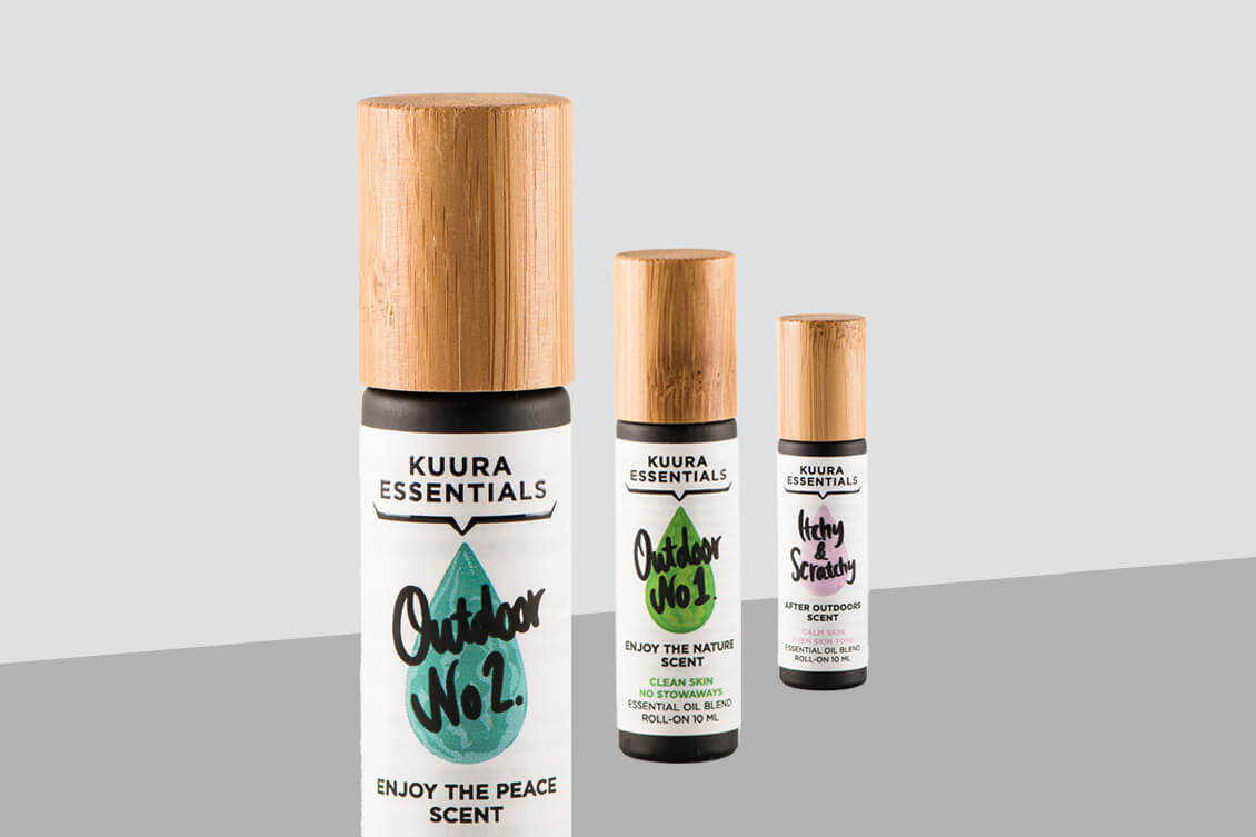 Luonnonmukaisiakin vaihtoehtoja on. Testiin saapunut Kuura Outdoor no. 2 ei tosin ole virallisesti hyttyskarkote, vaan ”toiminnallinen eteerinen öljyseos ulkoiluun”.