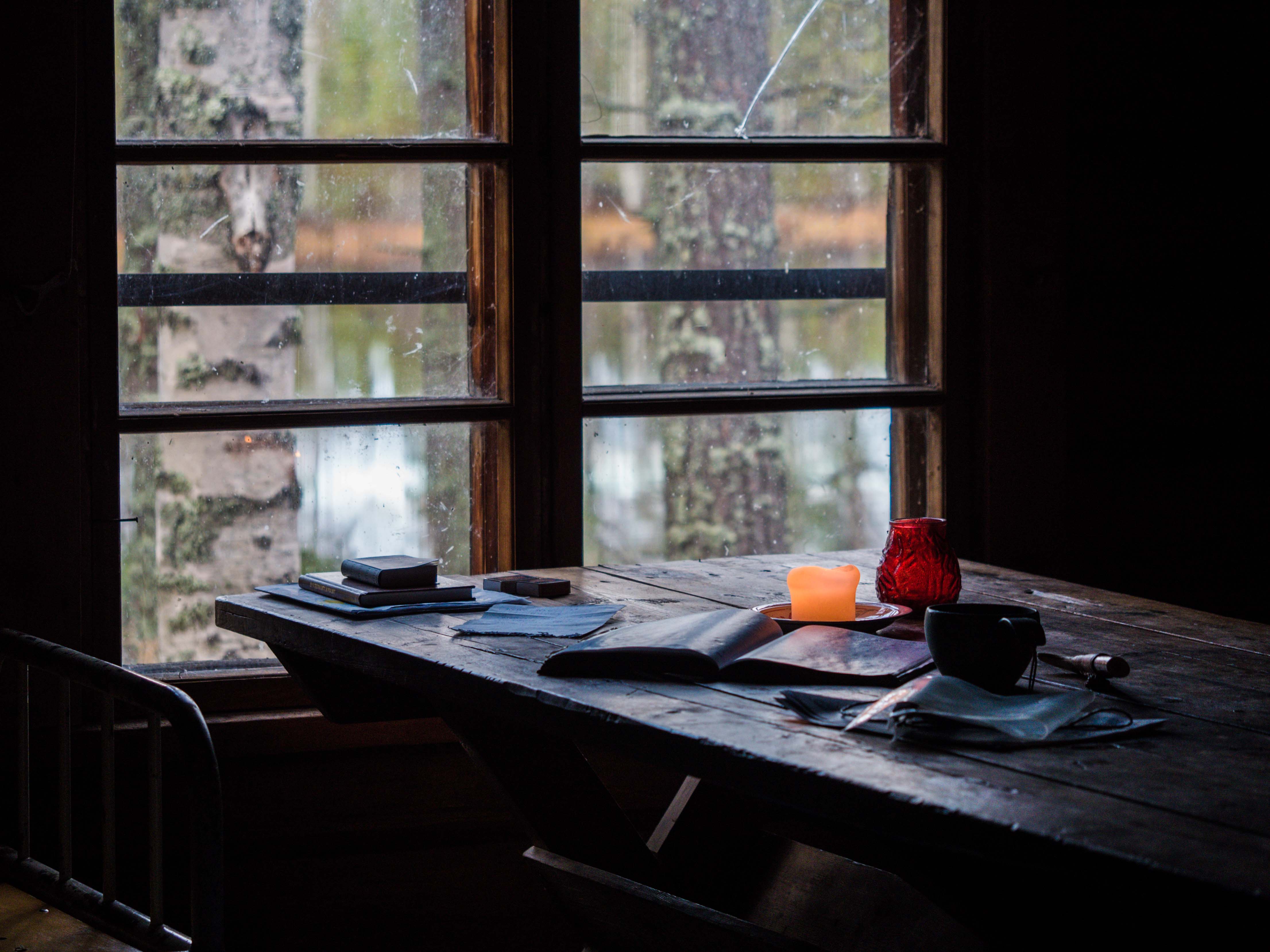 Kalamurekepihvien lämmetessä pannulla luemme vieraskirjasta erään viettäneen joulun suuressa tuvassa ja toisen kohdanneen polulla karhunpennun.