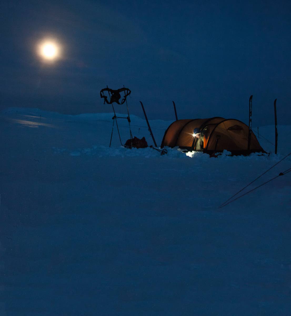 Tunturivaelluksen kaksi ensimmäistä hiihtopäivää taivallettiin lähes tismalleen samoissa maisemissa, paitsi vastakkaiseen suuntaan, missä karoliinien armeijan jokainen sotilas kävi ankarassa pakkasessa ja tuimassa talvimyrskyssä armotonta kamppailuaan kasvotusten kuoleman kanssa vuoden vaihteessa 1718–1719.