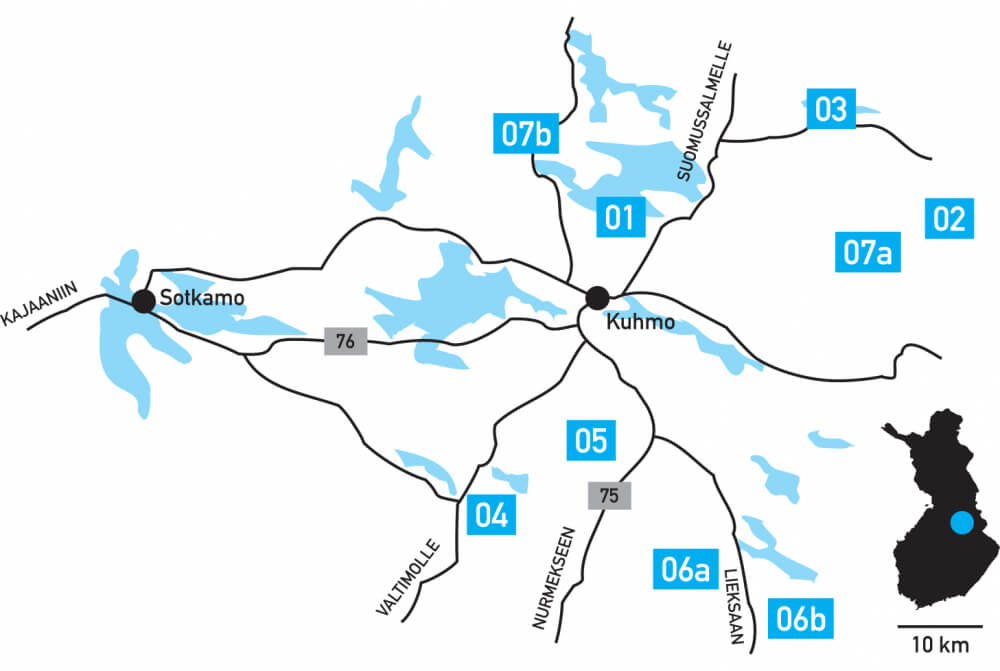 Tällä kertaa keskityn omaan kotikuntaani. Kuhmo on vähän kaikkialta katsoen kaukana päiväretkikohteeksi, ja Kuhmossa ei ole tunnettua pitemmän vaelluksen reittiä – mutta päiväretkikohteita on niin valtavan paljon, että kannattaa tulla koko viikoksi!