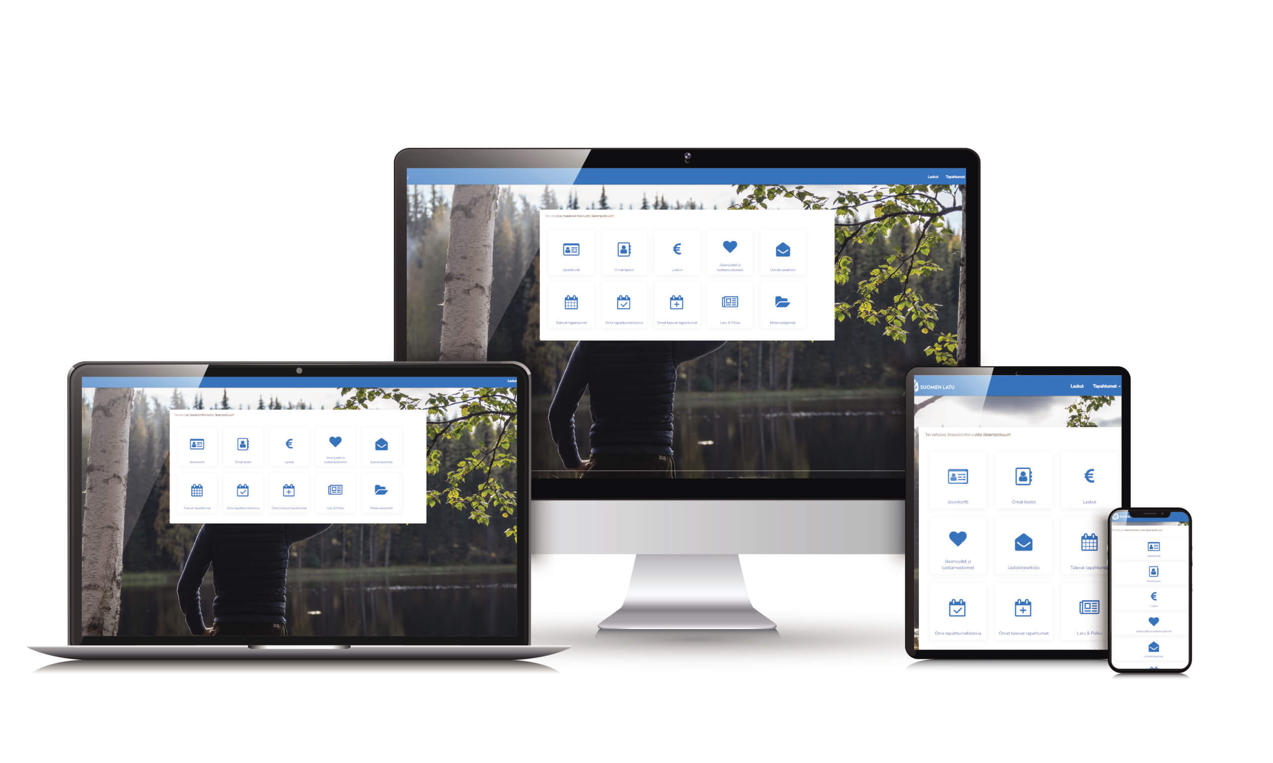 Sivuston kuvakkeiden kautta löydät jäsenkortin, yhteystietojesi muokkauksen, jäsenyytesi tiedot sekä tietoa yhdistyksesi ja Suomen Ladun toiminnasta. Sivusto toimii myös mobiililaitteilla.