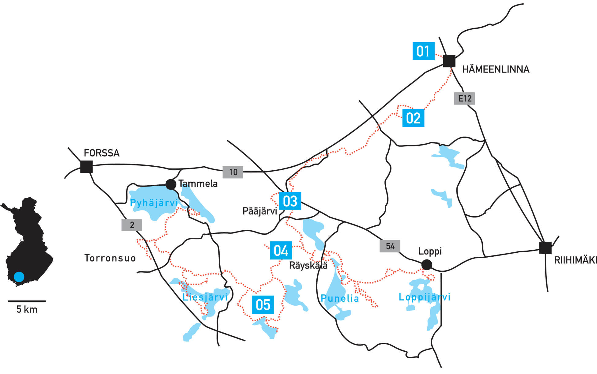 [05) Rengasreitti Onkimaanjärvi–Kivijärvi–Onkimaanjärvi, Tammela, Loppi.