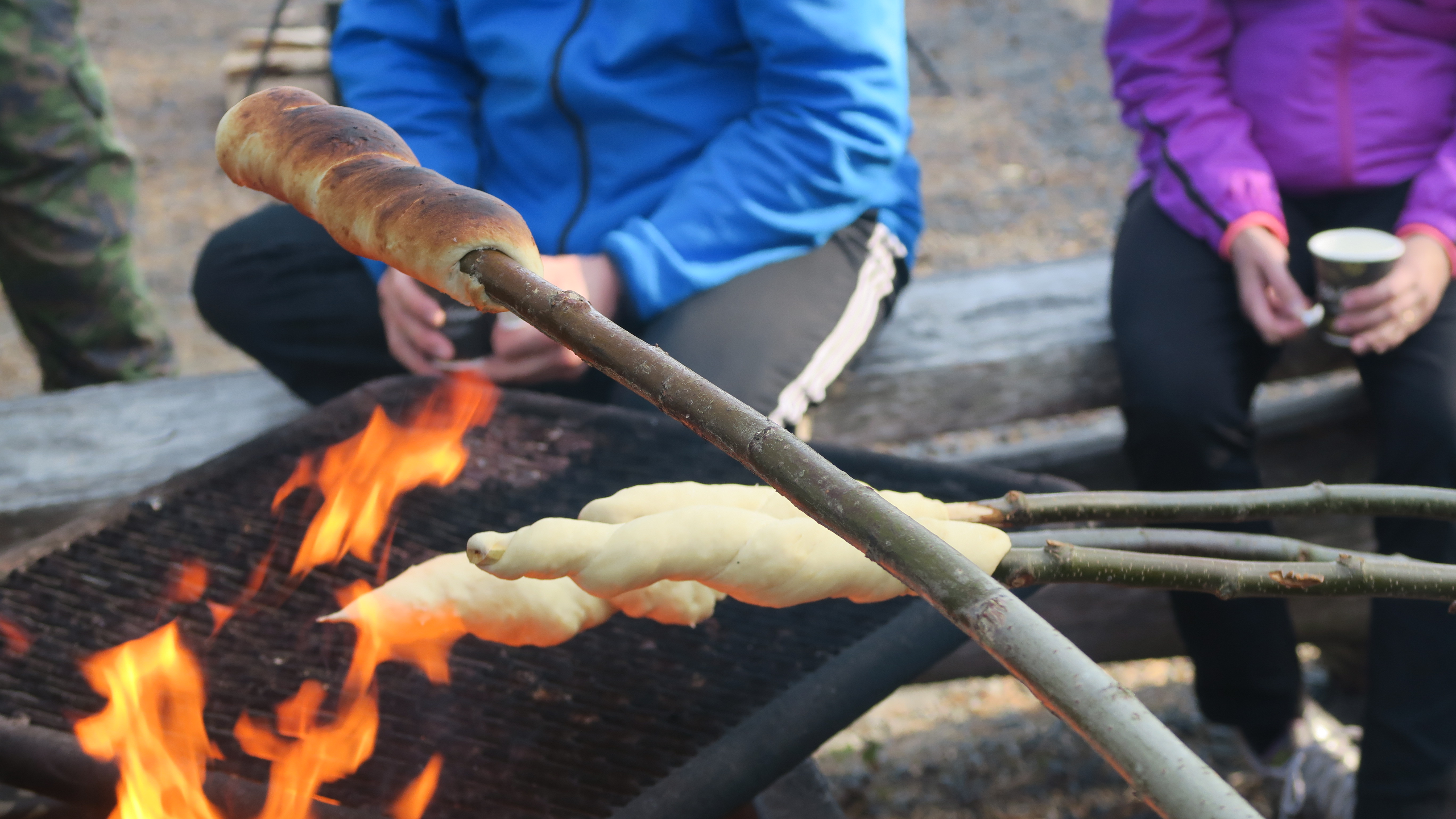 Iltanuotiolla paistuivat tikkupullat. Kuva: Anu Virtanen.