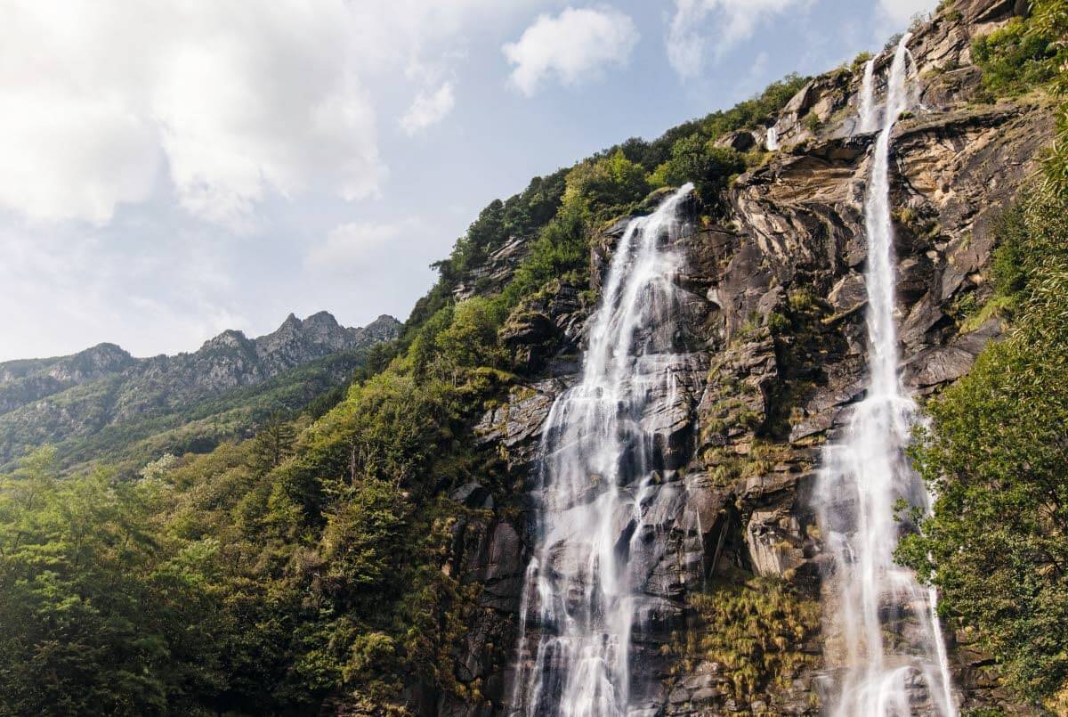 Aloitetaan kohteista helpoimmasta, Lombardian maakunnasta, aivan Chiavennan kaupungin laitamilta: Tuplavesiputous. En ollut kuullutkaan moisen sanan olemassaolosta, kunnes päädyin ihailemaan tuota Pohjanmeren ja Välimeren valuma-alueen (3 050 m) jääkylmää vettä syöksevää Acquafraggiaa. ”Incredibile!” kuten täällä sanottaisiin.