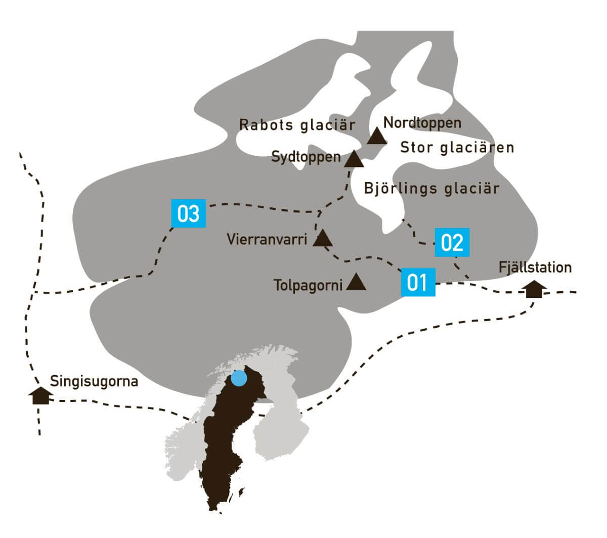 Ruotsin ja Norjan rajalla tunturit muuttuvat vuoriksi. Siinä missä suomalaisen tunturin huiputtaa iltapuhteina tai jopa rinkka selässä, naapurimaiden korkeimmat huiput ovat vaativia päiväretkiä.