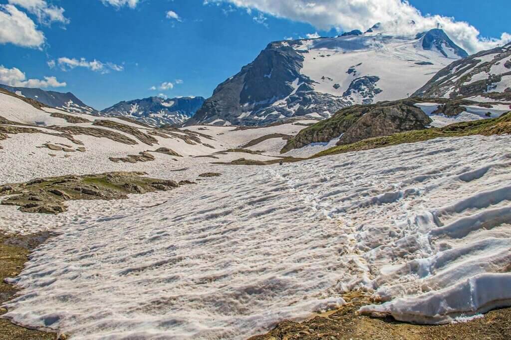 Yli 2 000 metrin korkeudessa lumessa voi joutua tarpomaan heinäkuun loppupuolellakin. Minulle ei tulisi mieleenkään lähteä keskitalven umpihankiretkelle polkujuoksulenkkareilla, mutta vuoristolumessa olen useinkin kävellyt niillä. Heinäkuuhun mennessä edellisen talven lumi on pakkautunut tiiviiksi ja kantavaksi.