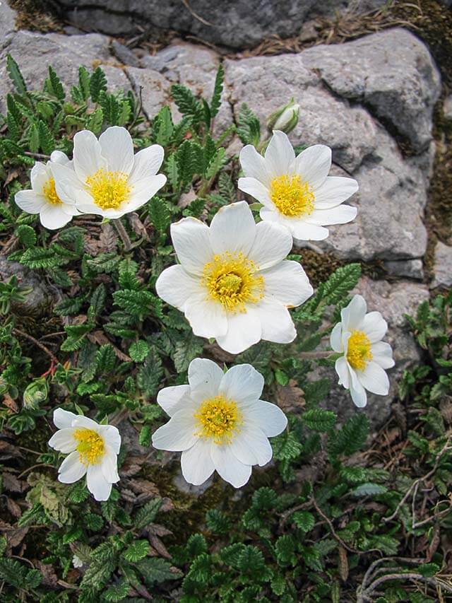 Kukkaniityillä rehottavat heinäkuussa monen lajiset liljat, kämmekät ja katkerot. Ylärinteillä kukkii alppiruusu.