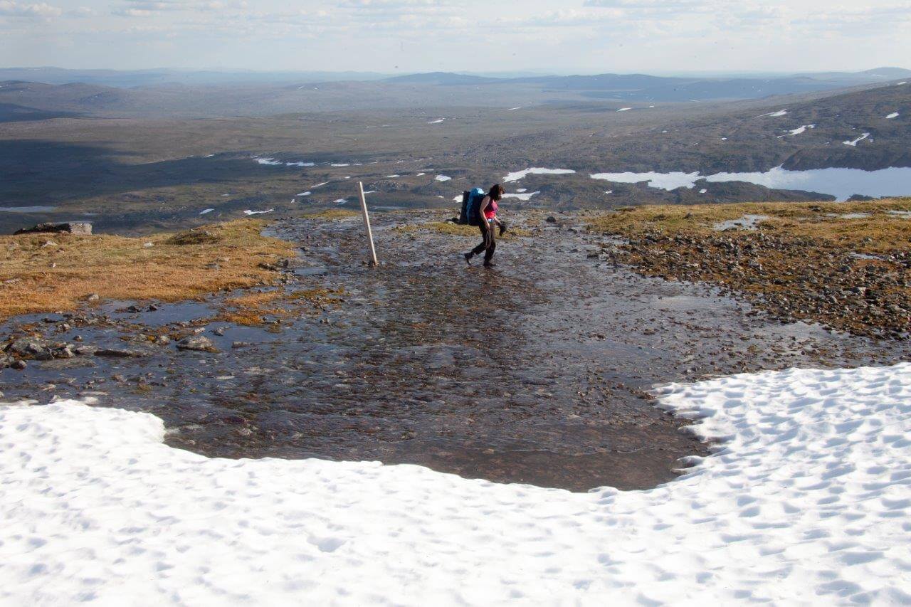 Kolme-neljä kilometriä ja pari kolme sataa korkeuserometriä ylöspäin panssariurana jatkuva polku noudattelee painettuun karttaan merkitsemättömän poroaidan vierustaa Gottetvárrin suuntaan.