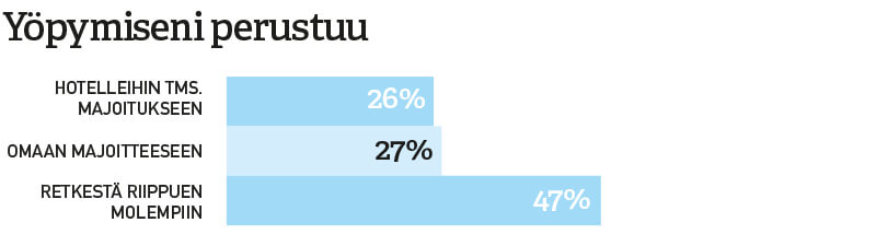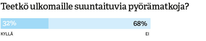 Joka kolmas pyöräilybarometrin vastaaja ilmoitti harrastavansa pyörämatkailua tai retkipyöräilyä. Kysymyksen asettelussa kriteerinä olivat yön yli kestävät retket.
