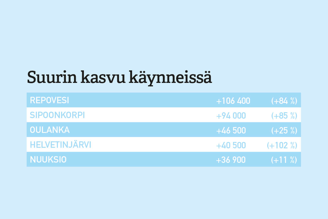 Lapin kohdalla pitää muistaa, että pandemian vuoksi menetettiin kevään tärkein sesonki. Esimerkiksi Ylläksellä ja Saariselällä melkein kaikki maastohiihtäjät kirjautuvat kansallispuistojen käyntitilastoihin. Suomen suosituimman kansallispuiston Pallas-Yllästunturin kohdalla hiihtokauden keskeytyminen rokotti noin 100 000 käyntiä. Vuositasolla vierailijoiden määrä pysyi silti edellisen vuoden tasolla. Menetys paikattiin kesä- ja syyskauden merkittävällä kasvulla.