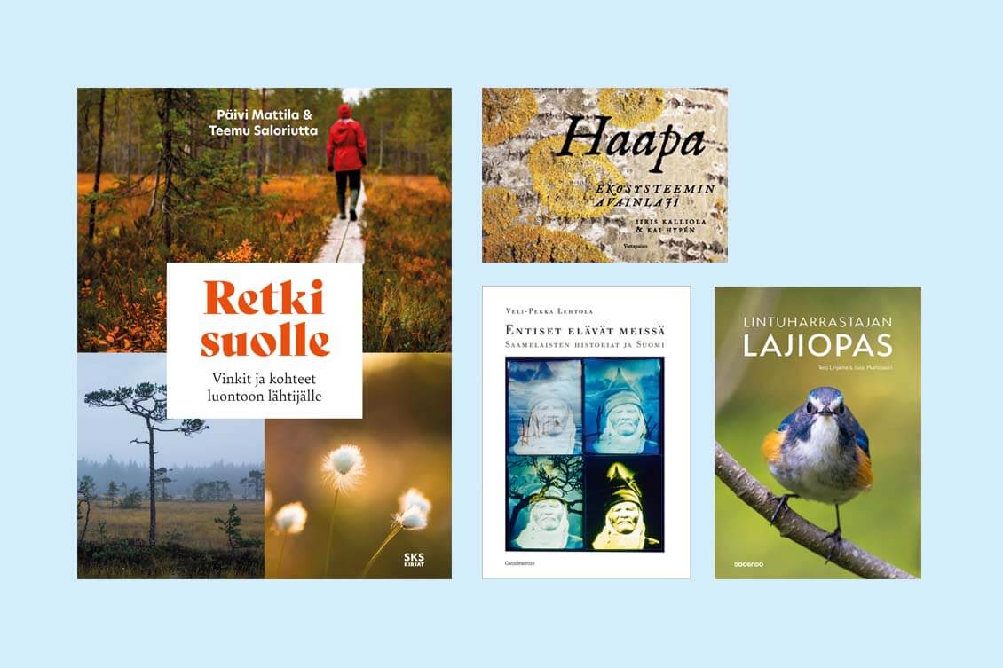 Retki suolle opastaa suoretkeilyn saloihin. Kevään kirjauutuuksista löytyy myös saamelaisten historiaa ja mielenkiintoisia luontokirjoja.