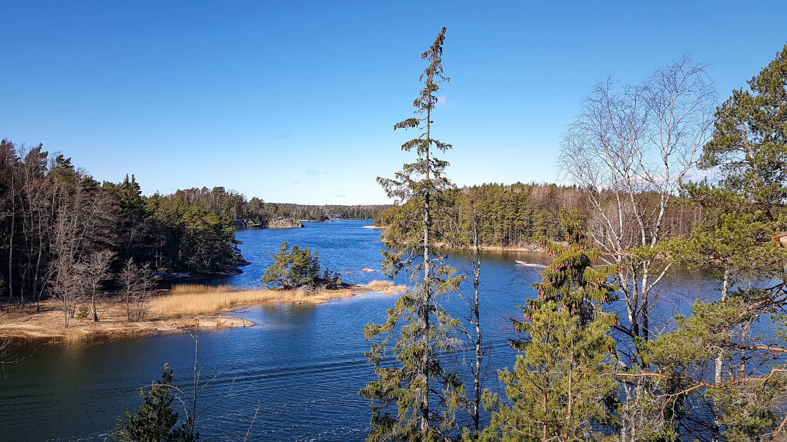 Kaislikon ja tervaleppien reunustamalla merenlahdella mieli ja silmät lepäävät, ja pian sen jälkeen valoisa haavikko lumoaa huminallaan. Merenrantakalliolta löytyy todella komea näköalapaikka, jossa kelpaa pitää vaikka termarikahvi- ja suklaatauko. Myöhemmin kohdalle osuva sammaleisten kivien rinne on todella kaunis näky.