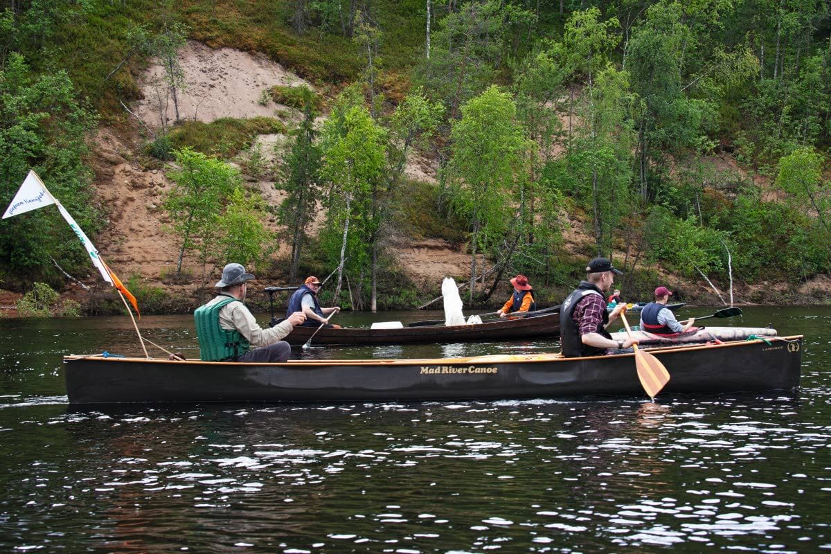 Aamulla venheet lasketaan taas vesille. Tällä kertaa pääsen itse perämelaa kipparoimaan. Eino on jälleen keulassa. Kolmanneksi miehistöön saamme keskiteljolle reippaan ja sinnikkään Lapissa nousevaa voimaa edustavan soutajan.