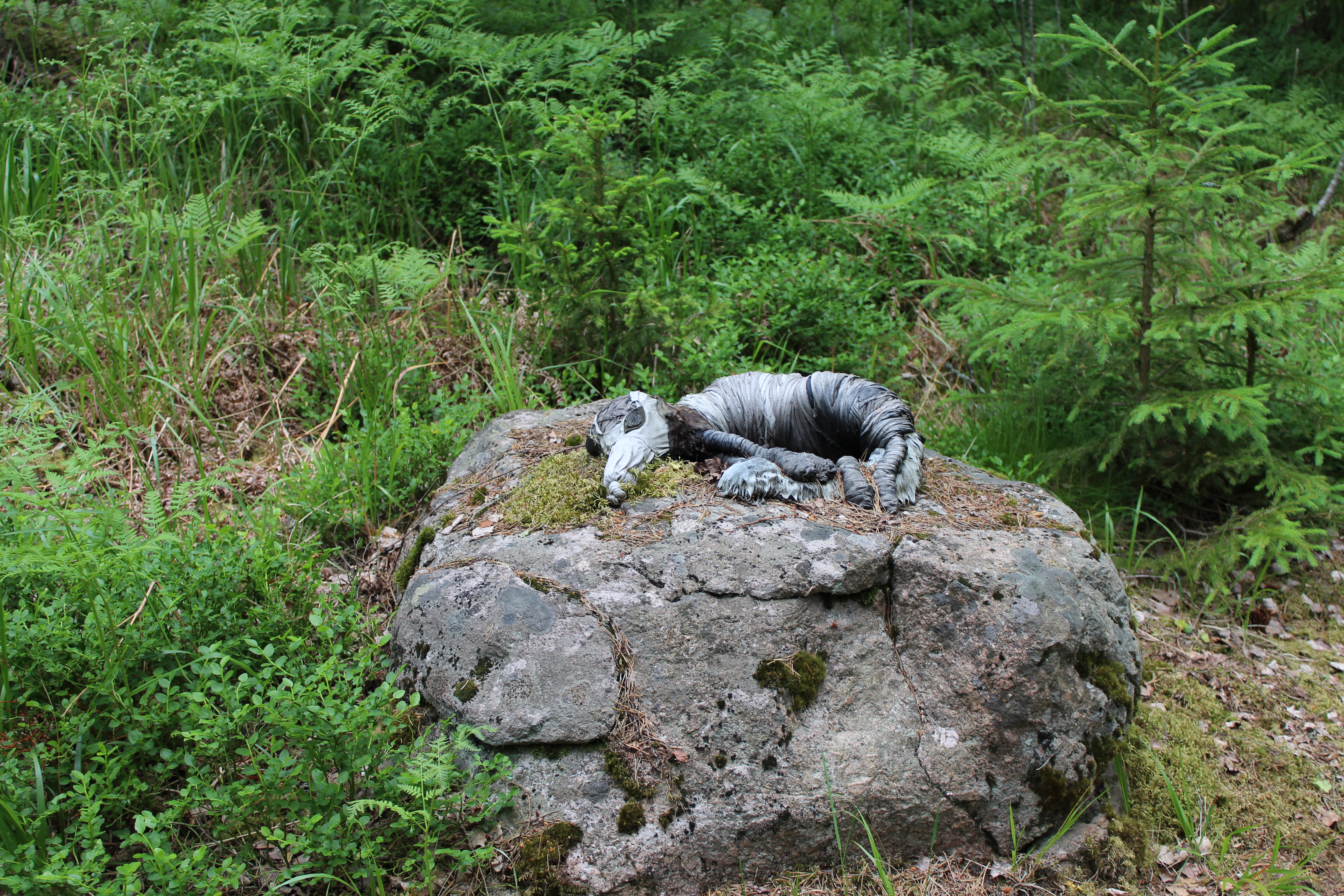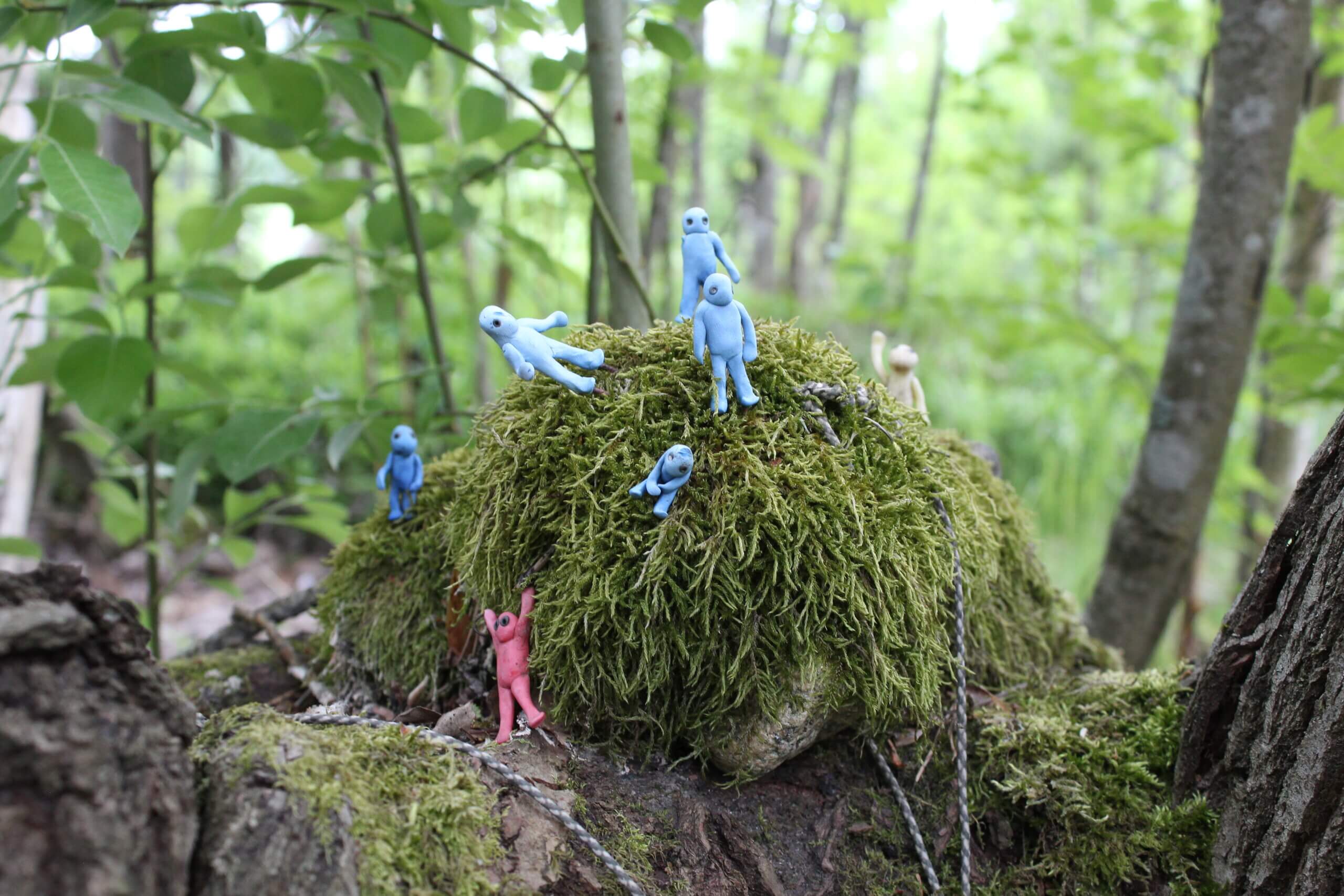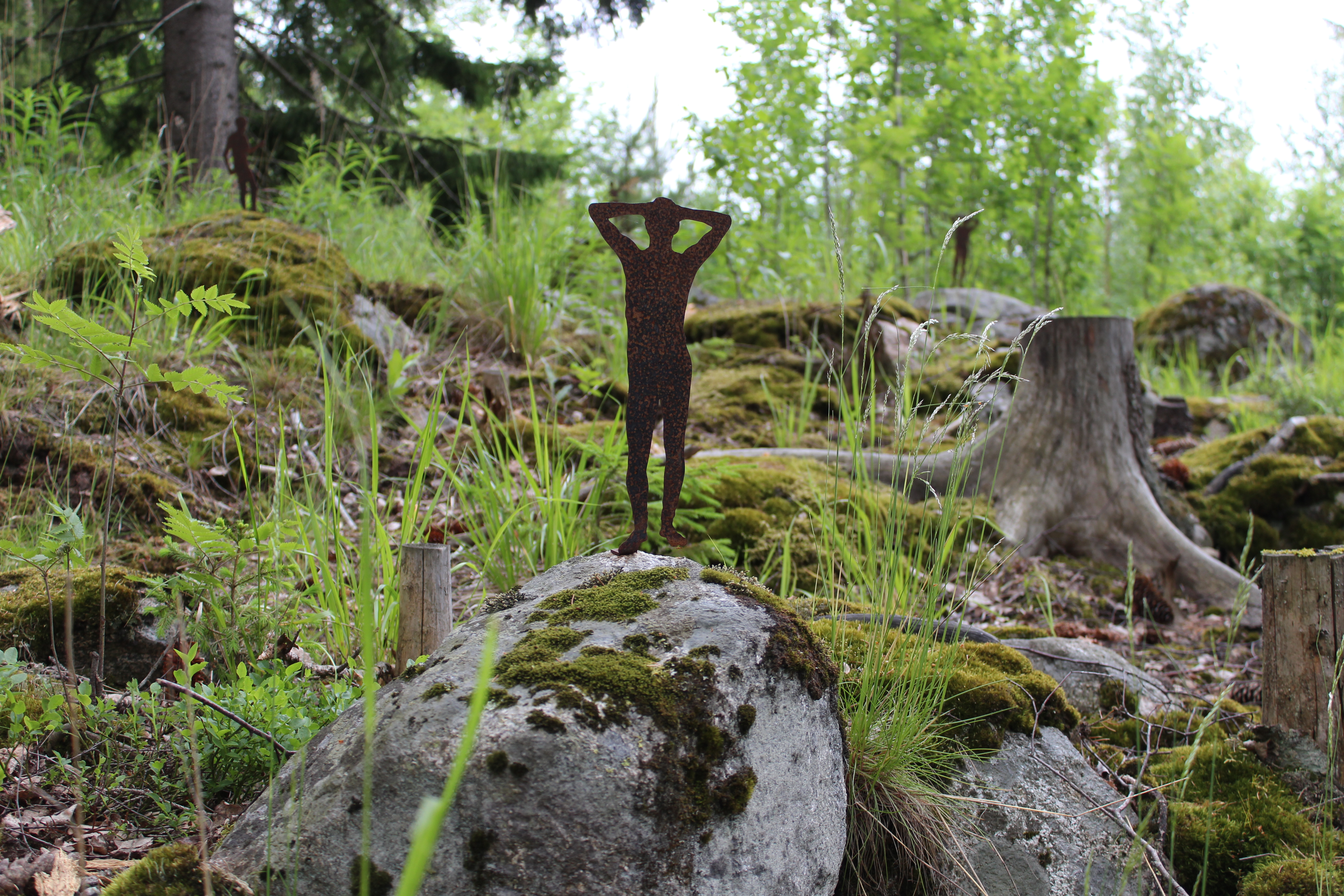 Pieniä metallisia hahmoja oli usealla kivellä. Teos: Tuomas Korkalo.