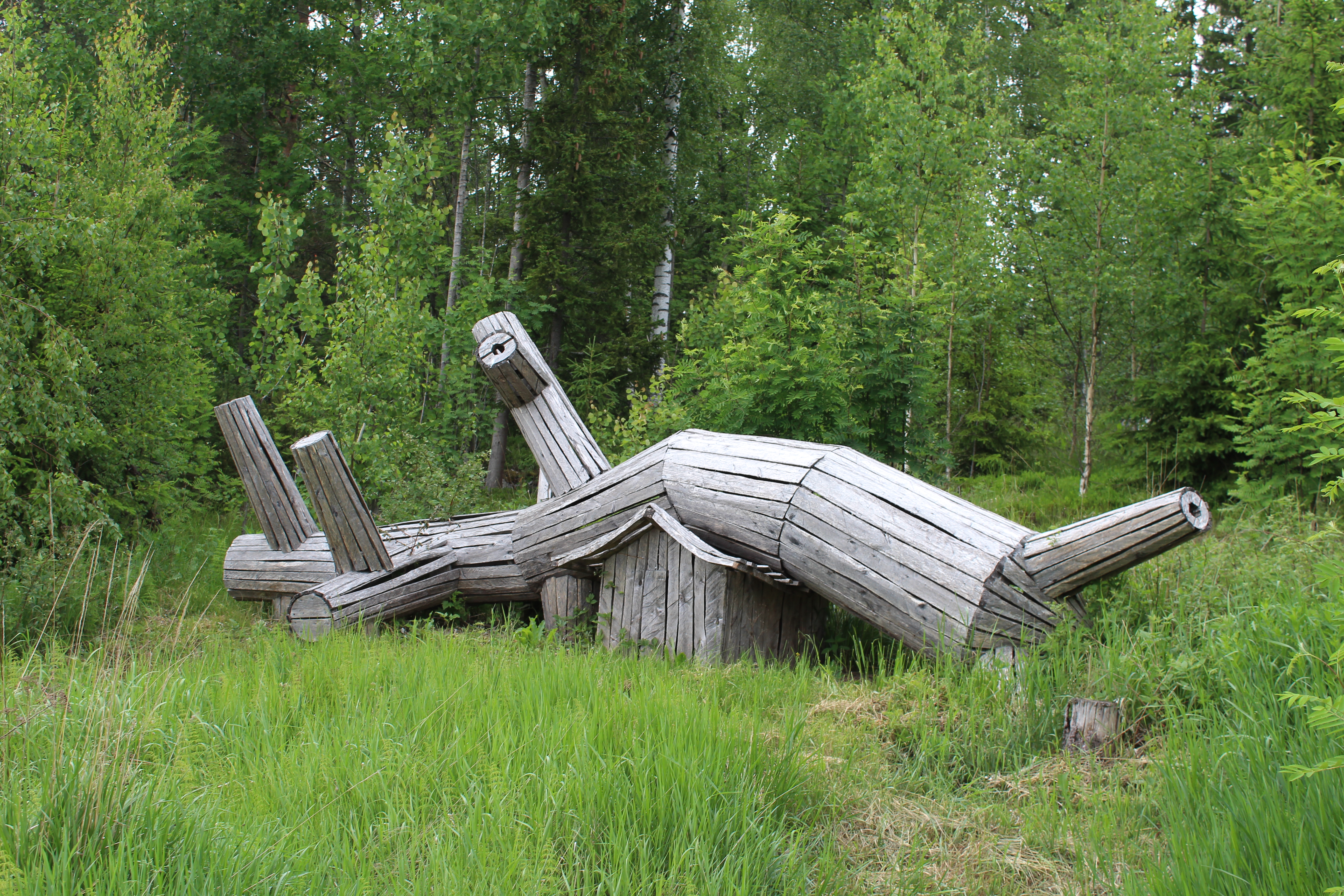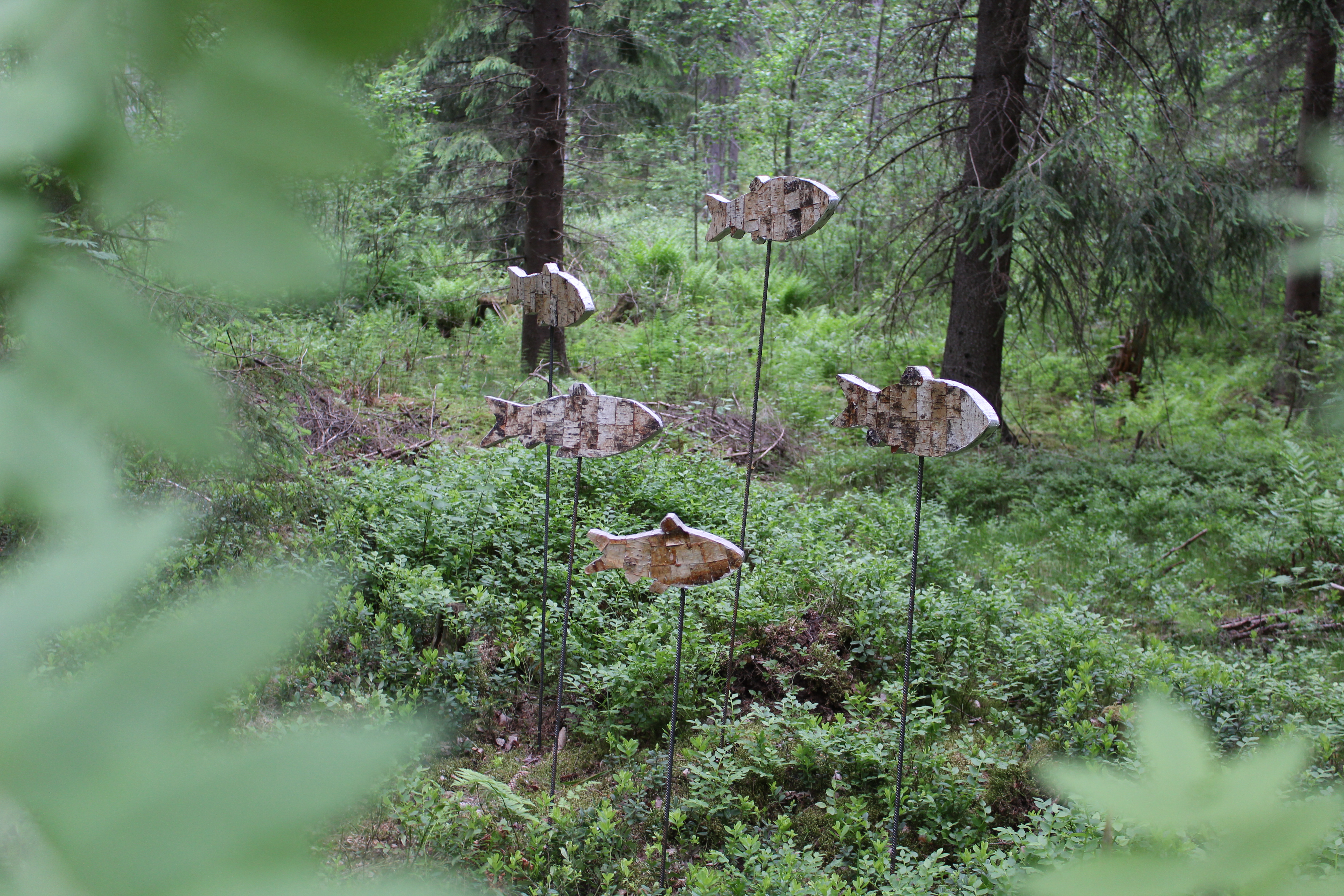 Kävin tutustumassa taidepolkuun kesäkuisena arkiaamuna ja sain omassa rauhassa kokea ja tutustua taideteoksiin. Taidetta on mieluisaa kokea luonnossa, koska luonto tuo taiteelle  joka kerta oman tunnelmansa sään, eläinten ja kasvien kautta. Tällä kertaa aamuista taidekierrosta täydensi lintujen konsertti sekä kesäkuun  lämpö ja vehreys.