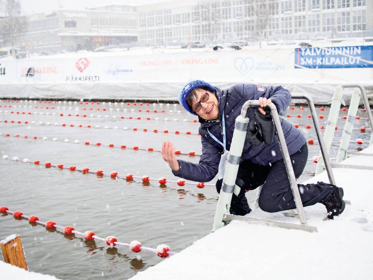 Kolmekymmentä vuotta hyiseen SM-veteen paukkupakkasista, räntä- ja vesisateista huolimatta: Sirpa Kivekäs on Suomen sitkeimpiä talvikilpauimareita. | Teksti & kuvat Riitta Alakoski