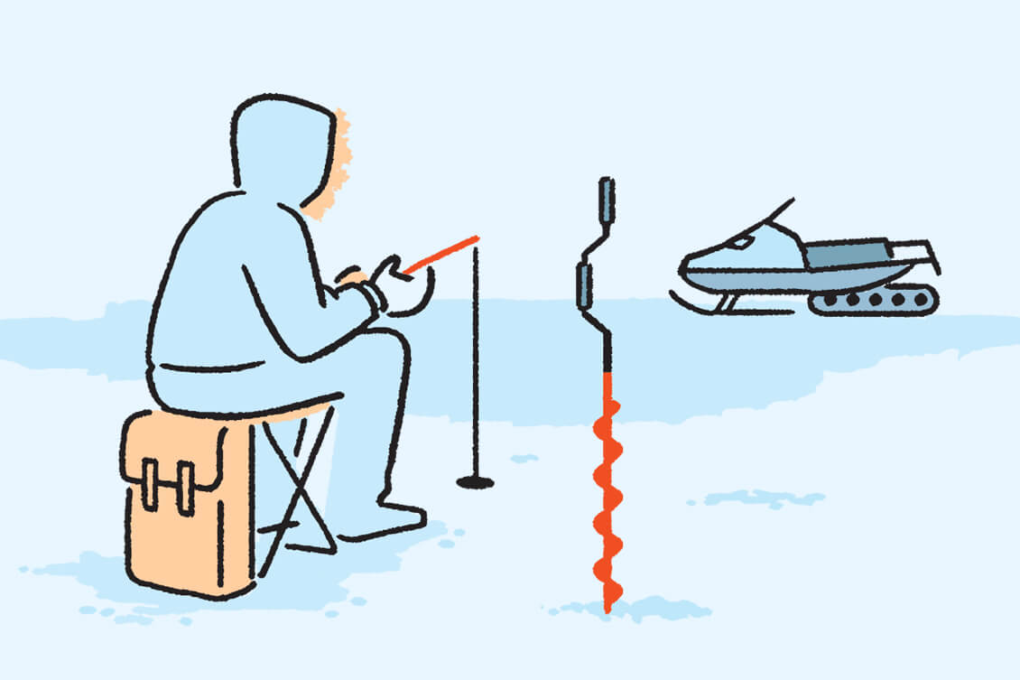 Kuumaa juomaa hörppiessä kodalle hurauttaa kelkka, ja sisään työntyy mies kelkkahaalarissa, karvalakki korvilla. Jaa-a, ei ole kaverilla kypärää, jollaista pitäisi käyttää. Kaveri kertoo olevansa viikon pilkkireissulla Keski-Suomesta. Hän oli tullut hakemaan lisää polttopuita, sillä oli kätevämpää tehdä lämmittävät tulet Lokan jäälle kuin tulla evästelemään kodalle.