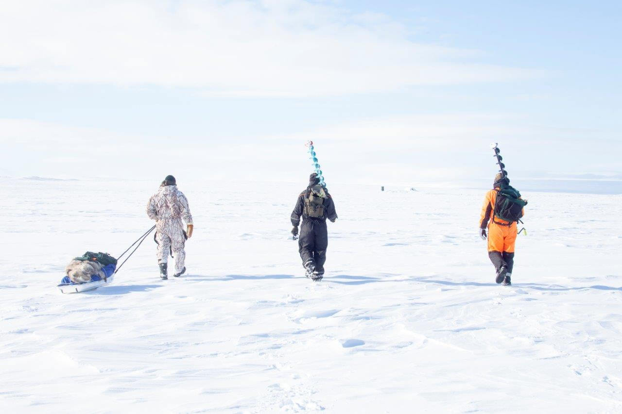 Kirkasta vettä löytyi jään alta parhaimmillaankin vain vaaksan verran. Turhautuneet pyyntimiehet laahustivat pettyneinä ja mielet maassa takaisin kammille pohtimaan tilannetta ja jatkosuunnitelmia.