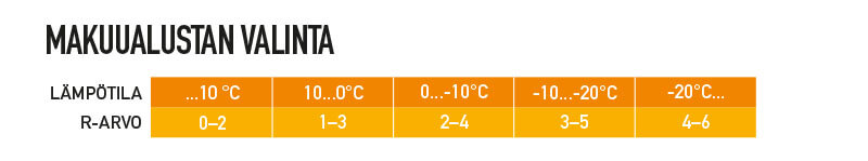 Eristävyyttä kuvaava R-arvo on laskennallinen luku, joka ei ota suoraan kantaa käyttölämpötiloihin, koska ne ovat yksilöllisiä. Valmistajat voivat niin tehdä, ja erilaisia muuntotaulukoita löytyykin joka lähtöön. Makuualustankin valinnassa olennaista on tunnistaa omat fysiologiset ominaisuutensa ja tehdä valinta mieluiten hieman yläkanttiin.