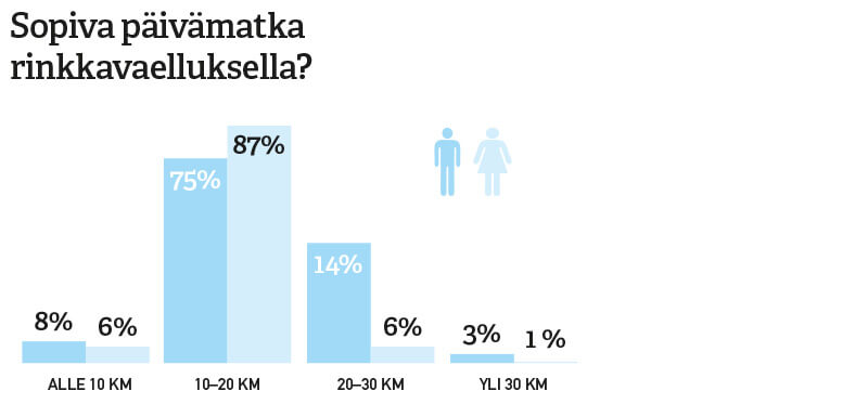 Vastausten perusteella tyypillisen rinkkavaelluksen pituus on viisi vuorokautta ja sopiva päivämatka jotain 10 ja 20 kilometrin väliltä. Vuoden aikana keskiverto harrastaja tekee kaksi vaellusta.