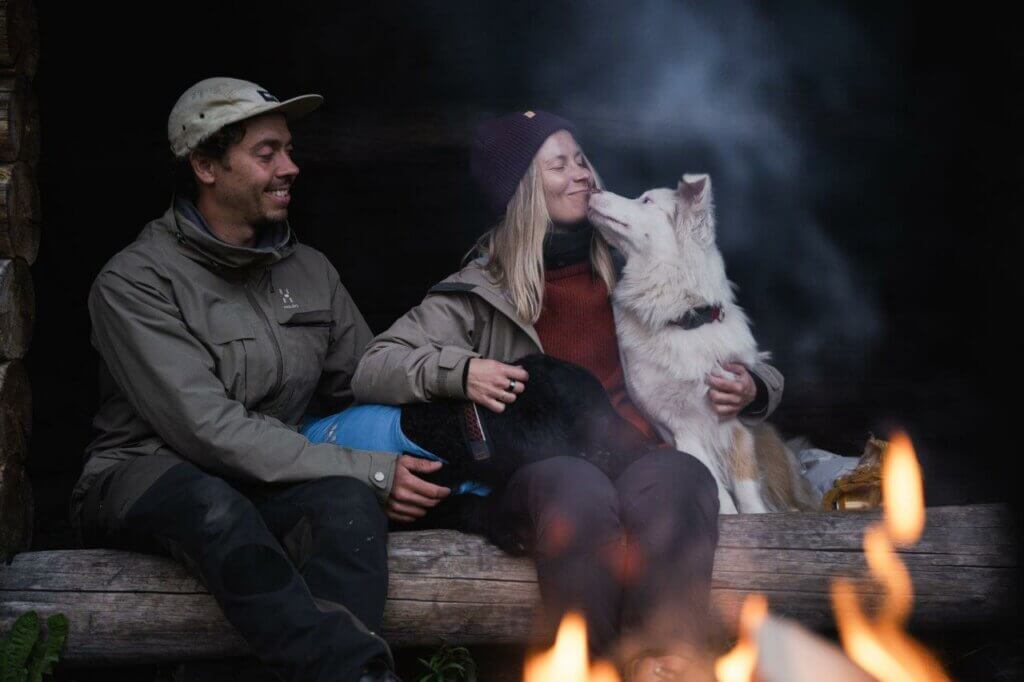 Koirat hieman ihmettelevät, mihin keskellä yötä lähdetään, mutta onneksi molemmat ovat reippaita retkikavereita ja laavuun päästyään nukahtavat uudelleen.