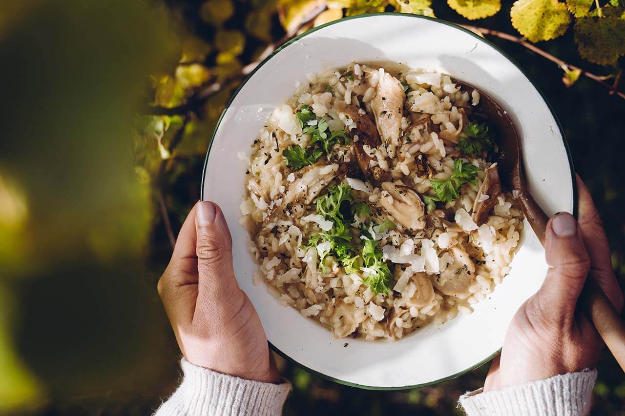 Vaelluksella Liota herkkutatteja pari tuntia lämpimässä vedessä ennen risoton valmistusta. Ruokailuhetkellä lisää kuivattu risotto ja kuivatut tatit liotusliemineen, sekä sen verran lisää vettä kattilaan, että risotto peittyy. Keittele miedolla lämmöllä hämmennellen, kunnes risotto on valmista. Tähän kuluu noin 5 minuuttia.
