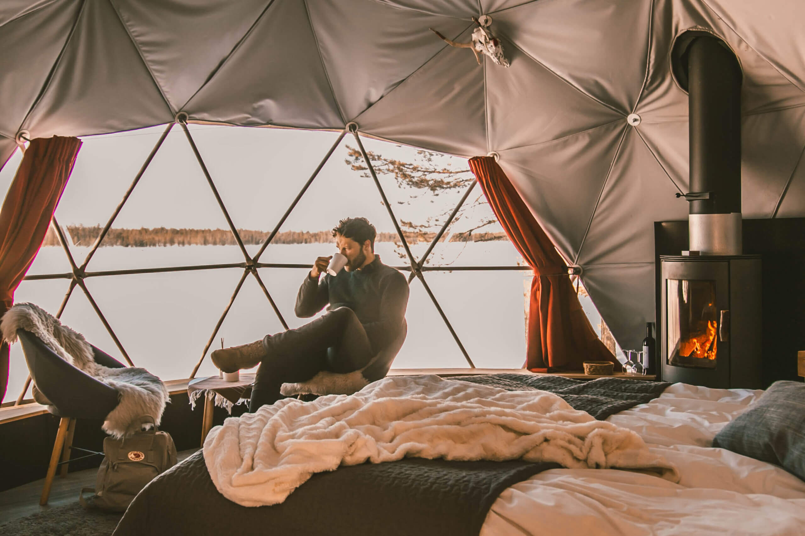 Harriniva tarjoaa Aurora Dome glamping-majoitusta Torassiepissä ja Jerisjärvellä. Kuva: Harriniva.