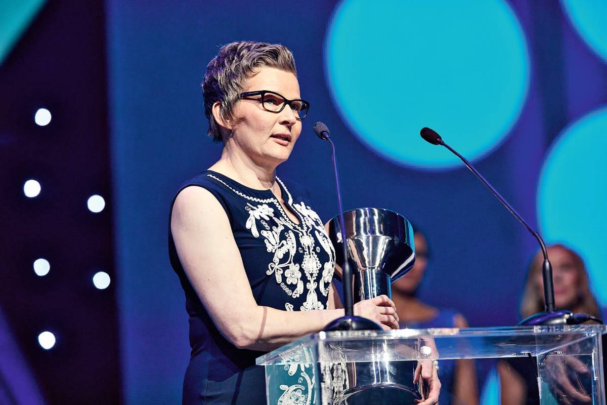 Vuotuinen urheilugaala tammikuussa ei tarjonnut pelkästään huippu-urheilun juhlaa, sillä Suomen Ladun jäsenyhdistys Maaselän Latu Reisjärveltä valittiin vuoden urheiluseuraksi. Raadin mukaan vuoden urheiluseurassa näkyvät arvostus, kunnioitus ja kannustus kaikilla tasoilla. Voittajasta paistaa myös seuratoimijoiden ja yhteistyökumppaneiden huomioon ottaminen. Kuvassa Maaselän Ladun puheenjohtaja Heli Hilliaho pitämässä kiitospuhetta Urheilugaalassa.