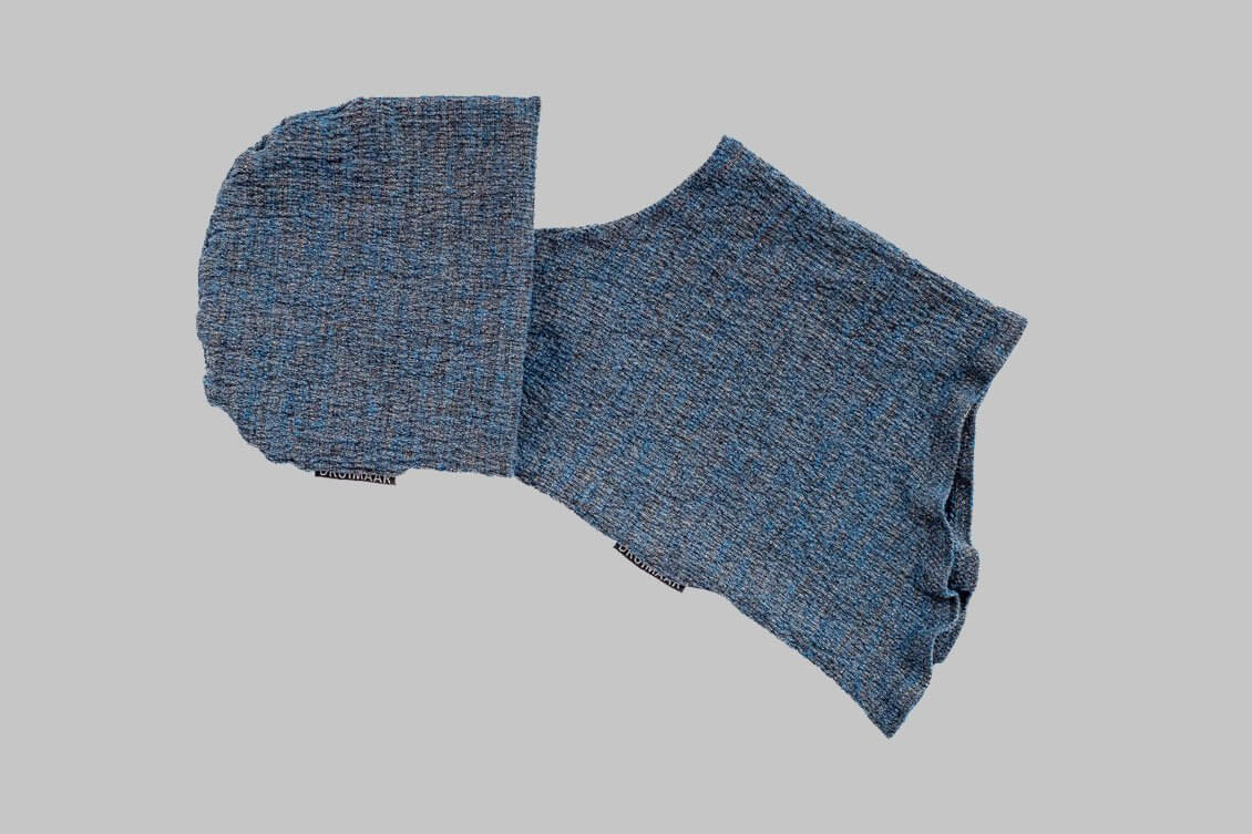 Materiaalien lisäksi suunnittelun keskiössä on ergonomia. Etenkin kauluri eroaa leikkaukseltaan tavanomaisesta putkihuivista. Takaa pidempänä se suojaa niskaa ja on nostettavissa paremmin ylös takaraivolle. Pipon ja kaulurin yhdistelmä toimii kypärähuppuna.