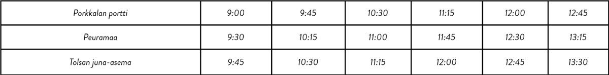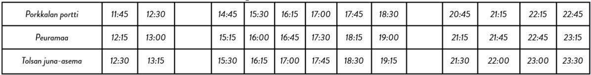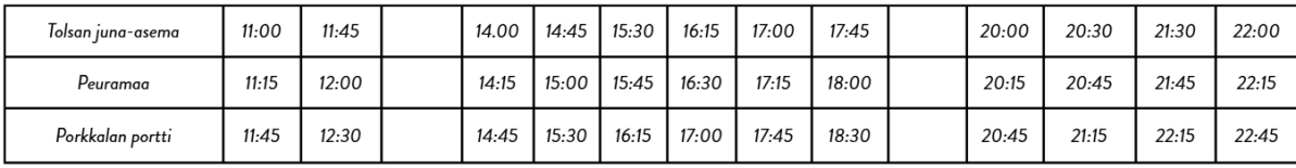 Bussiaikataulu: Tolsa - Peuramaa - Porkkalan portti