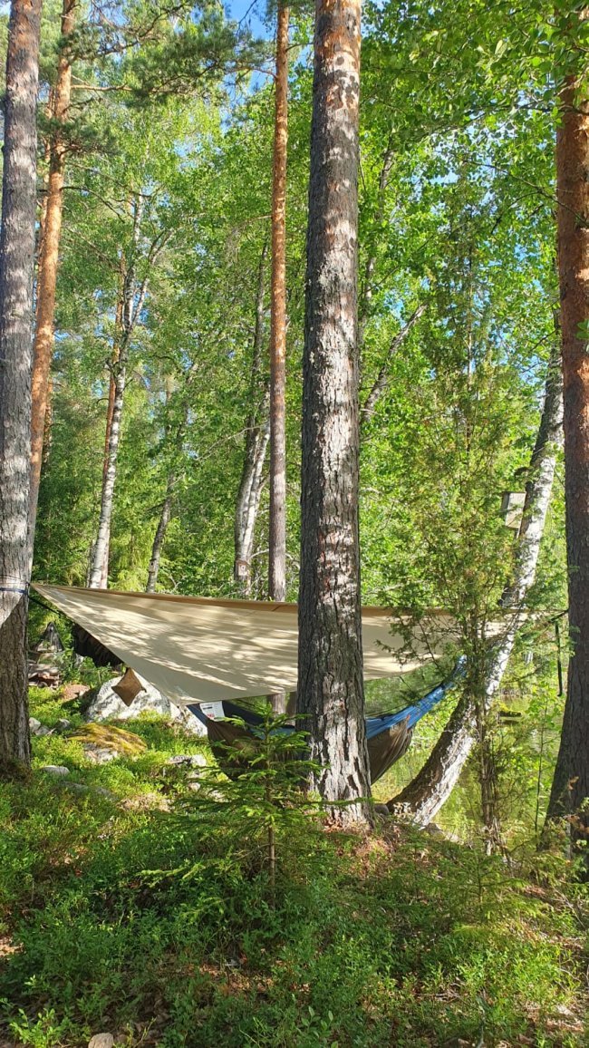 riippumattosetti (riippumatto, hyttysverkko ja tarppi) vuokrattavana.