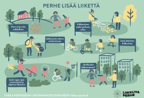 Perhe lisää liikettä ja Lähiluonnon merkitys lapselle ja aikuiselle -esite on Liikkuva perheen ja Suomen Ladun yhteinen tuotos.