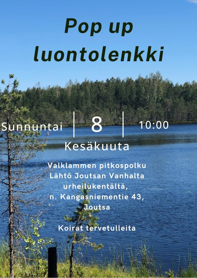 Tule mukaan Pop Up luontolenkille. Kierrämme Valklammen pitkospuut ja reitin pituus on noin 4 kilometriä.