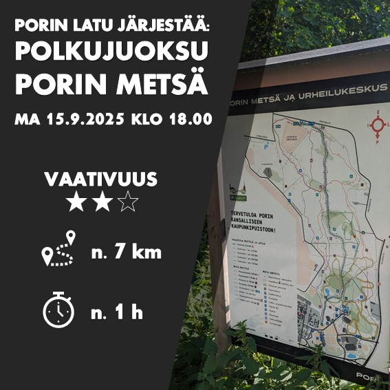 Lisätietoja Porin Ladun polkujuoksuohjaajilta: Eemeli Lappalainen p. 046 851 4010 ja Jarno Kuula p 040 7329065.