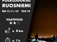 | Kokoontumis- / lähtöpaikka | Ruosniemen hiihtokeskuksen parkkipaikka |