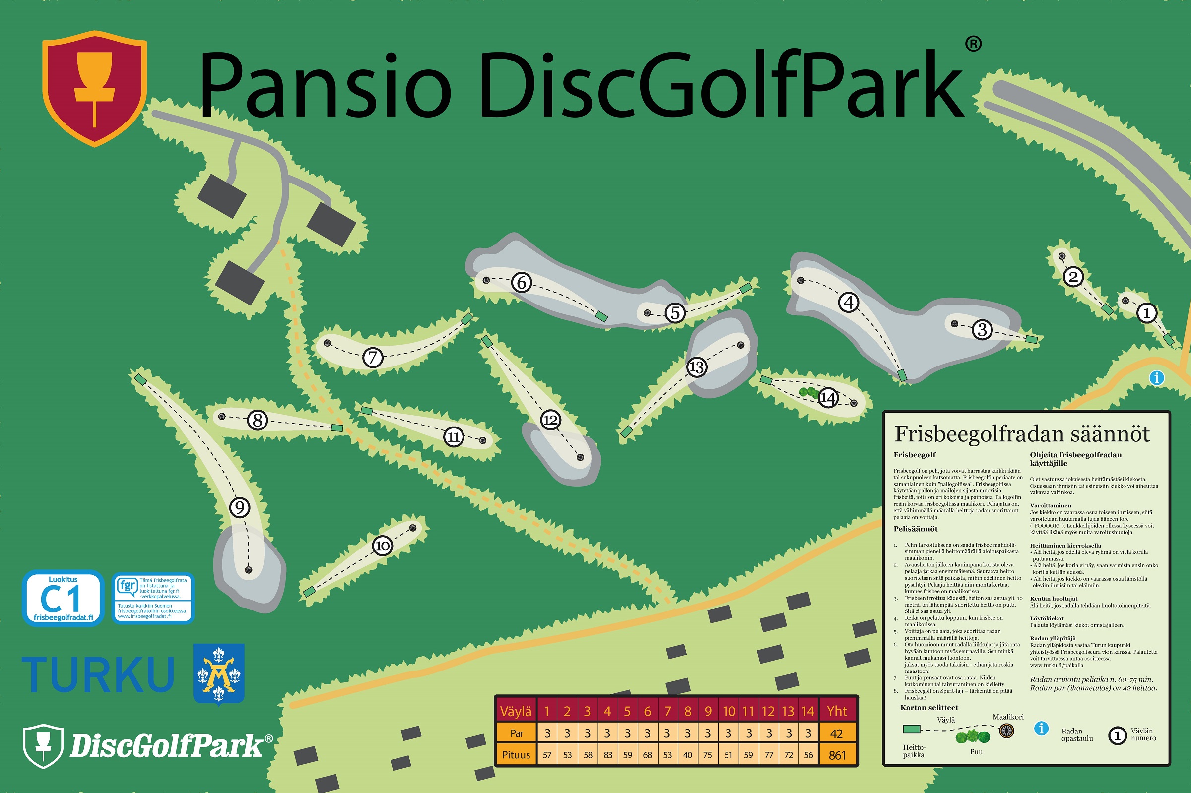 Turun Pansiosta löytyvä pituutensa puolesta aloittelijaystävällinen 14-väyläinen rata. Maasto on jylhää ja kallioista, joten korkeuserot tuovat oman mausteensa.