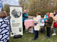 Maali ostarin vieressä Relanderin aukiolla. Maalissa tarjotaan mehua.