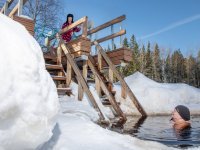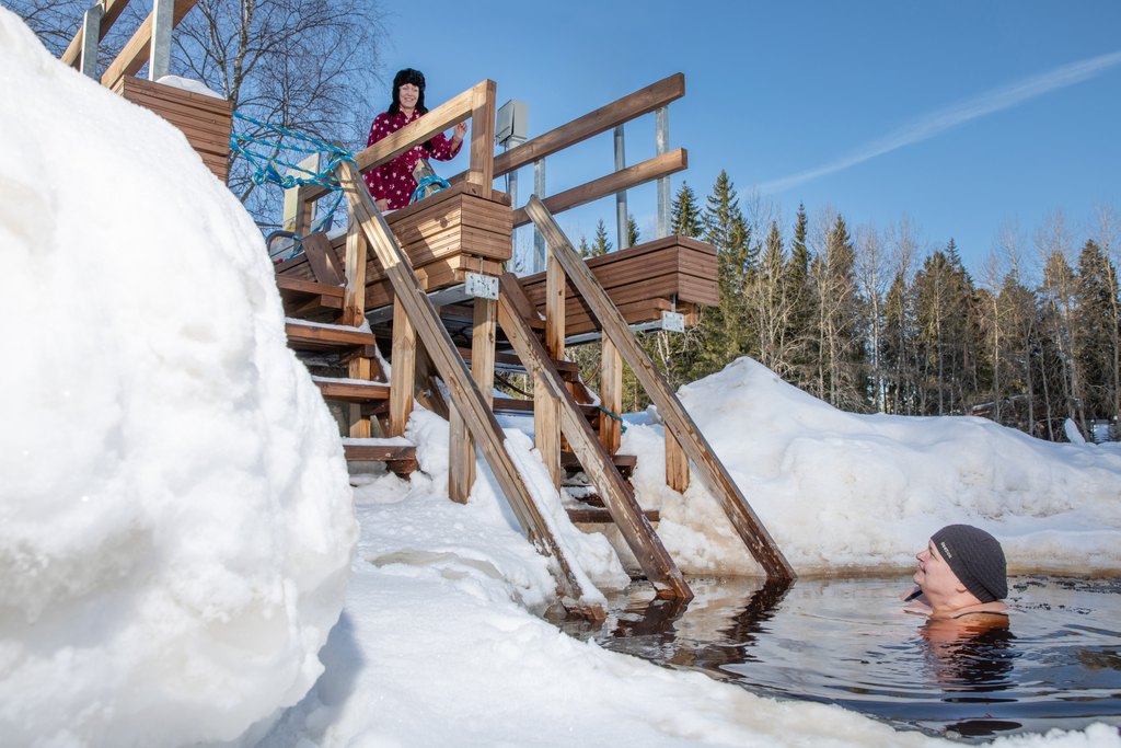 Koskenranta lämmin talviuintirakennus. Olethan Kiuruveden Ladun jäsen, saat avainkoodin talviuintimaksua vastaan 32€.