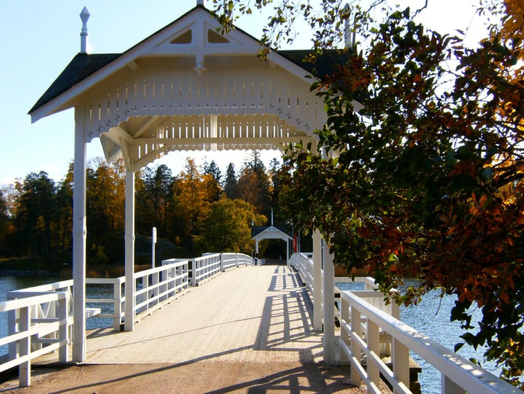 Olympiastadionilta patikoimme noin 5 km keskuspuiston reittejä ulkoilijan keitaaksi kutsutulle Maunulan majalle. Maunulan majalla pidetään evästauko. Maunulan majan kahvila on tunnettu munkeistaan, mutta tarjolla on myös keittolounasta. Tauon jälkeen siirrymme bussilla Helsingin kaupungin ulkoilupuisto Seurasaareen. Seurasaaressa toimii myös ulkomuseo, jonka 88 museorakennusta on tuotu eri maakunnista. Vanhimmat hirsirakennukset ovat 1600-luvun lopulta. Museokohteet eivät ole avoinna vielä, joten niitä voimme ihastella vain ulkoapäin. (Kuva: Seurasaareen johtava silta, Creative Commons/Wikimedia Commons.)