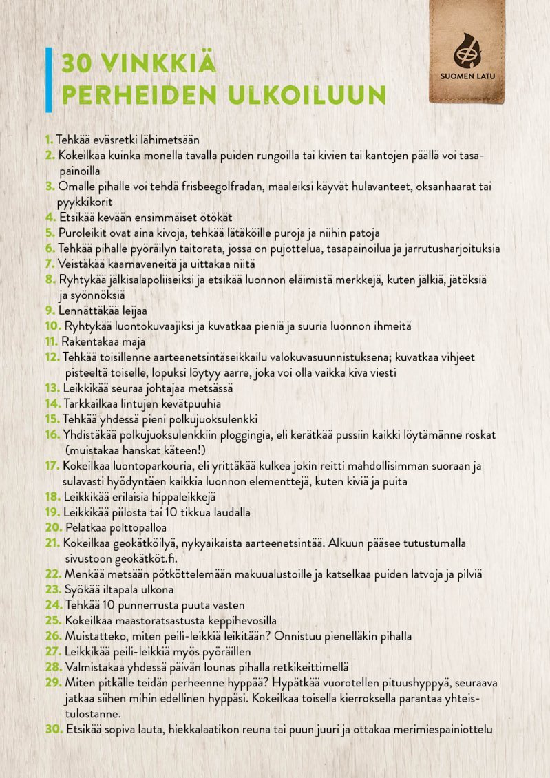 Lisää hauskoja vinkkejämme monipuoliseen ulkoiluun: