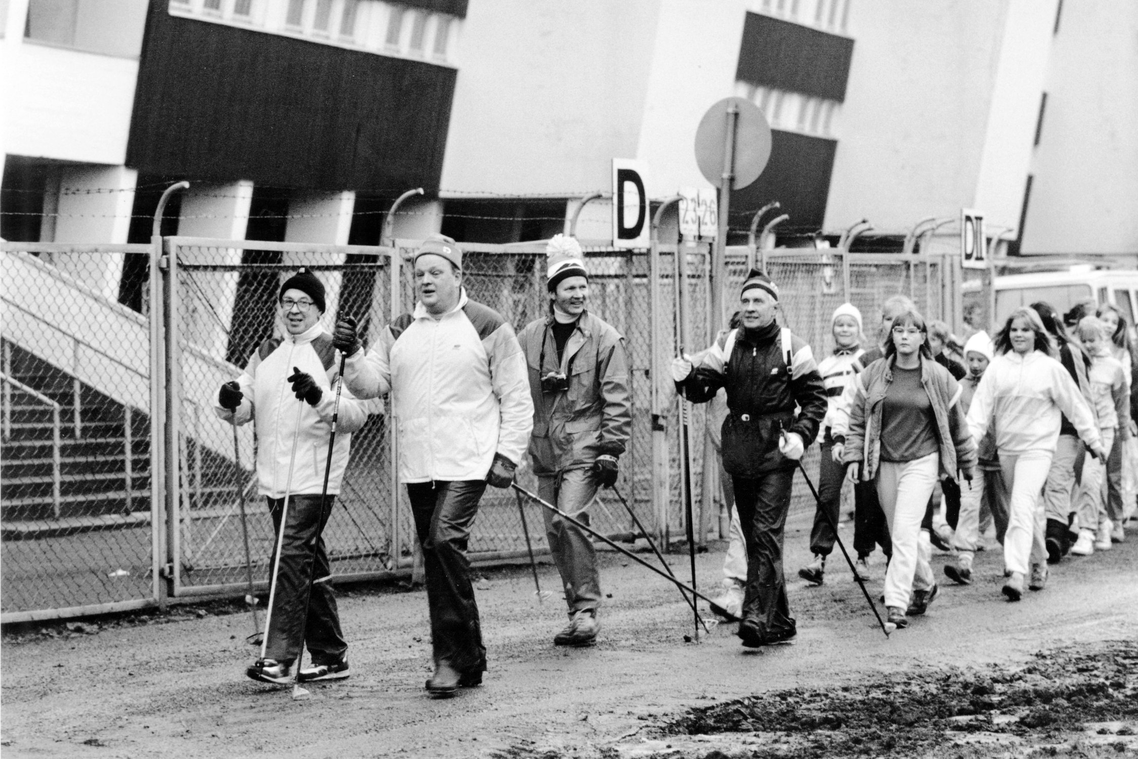 Tahko Pihkalan kunniaksi järjestetystä hiihdosta muodostuikin ensimmäinen ryhmässä tehty sauvakävely, jonka ikuisti Ilta-Sanomien kuvaaja Erkki Raskinen (kuva tämän jutun avauksessa).