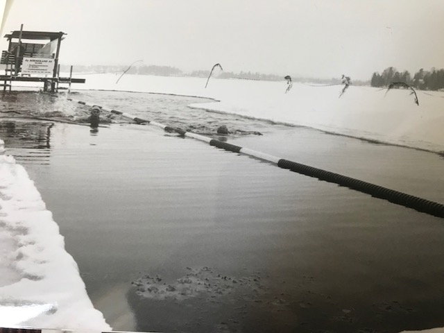 Yllä oleva kuva on ensimmäisistä Avantouinnin SM-kilpailuista vuodelta 1989 (Kuva: Kauko Reiman)